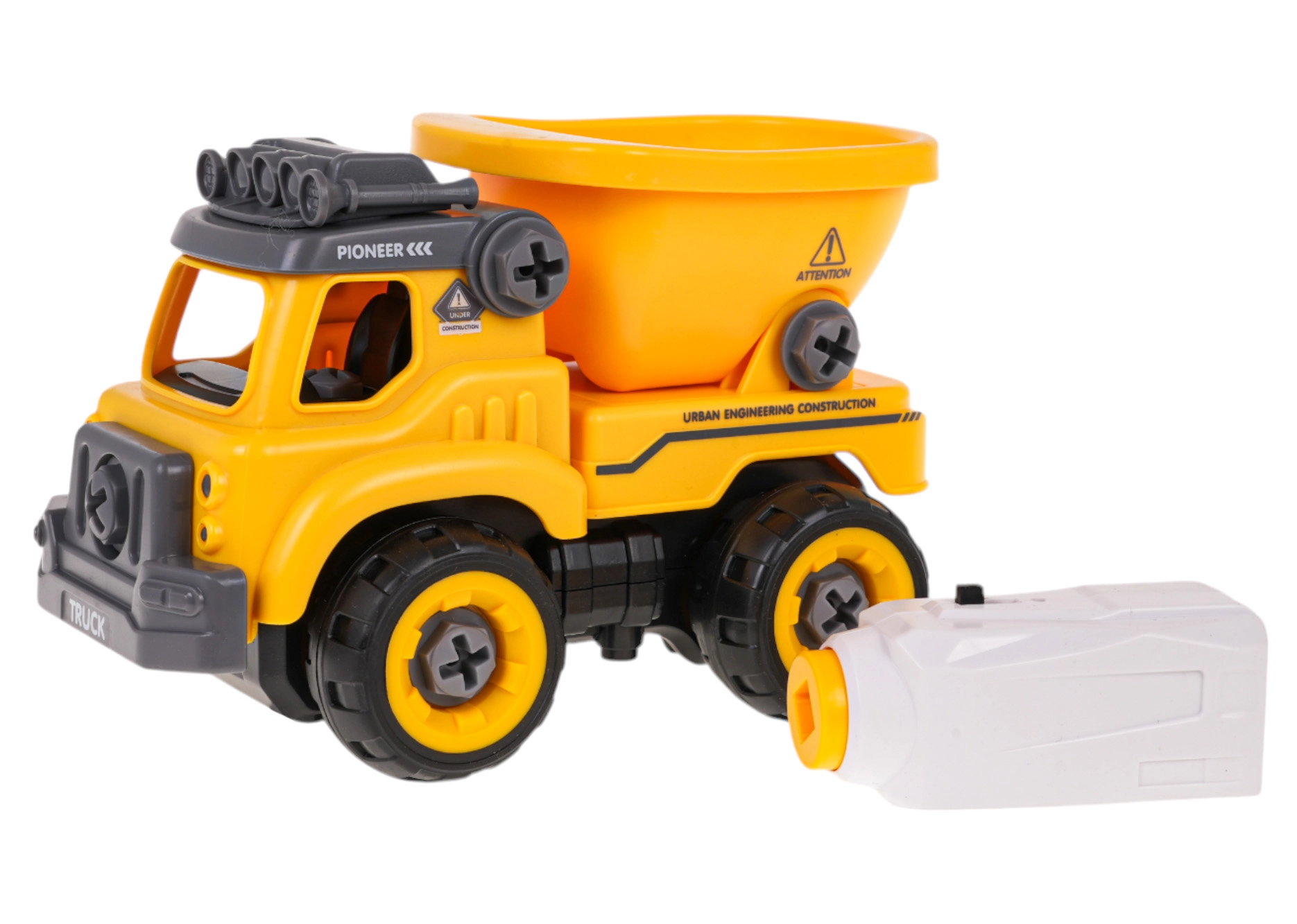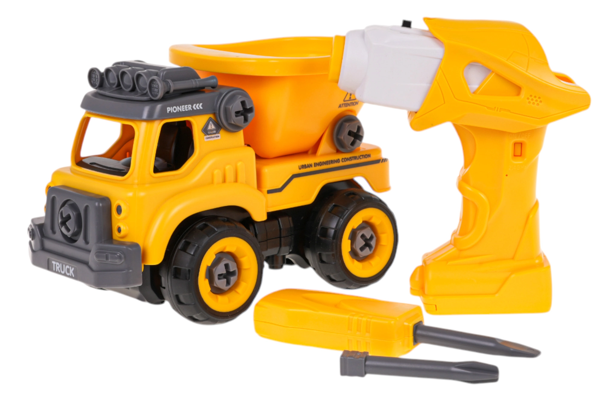 Interaktyvi statybinė transporto priemonė yra ideali dovana vaikams nuo 3 metų. Išsiskiria ryškiomis spalvomis ir pagaminta iš kokybiškų medžiagų. Transporto priemonė pristatoma pilnai surinkta, o jūsų vaikas ją gali išardyti naudodamas rankinį atsuktuvą arba baterijomis maitinamą grąžtą, kuris taip pat veikia kaip nuotolinio valdymo pultas.