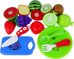 Suteikite vaikams džiaugsmo žaidžiant virėjus su šiuo spalvingu ir praktišku rinkiniu. Jame yra realistiškai atrodantys vaisiai, kuriuos galima perskirti pridedamu peiliu. Puikiai tinka smulkiajai motorikai lavinti ir vaizduotei skatinti.
