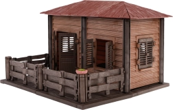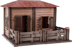 - Ūkininko namelis su lova ir suolais.