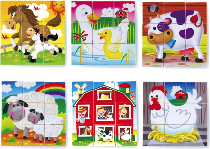 Atraskite fermos pasaulį su lengvais plastikiniais kubeliais, kuriuos lengva suimti net mažoms vaiko rankytėms. Kiekviena kubelio pusė sudaro skirtingą paveikslėlį, todėl vaikai gali dėlioti 6 skirtingus motyvus ir mokytis atpažinti formas, spalvas bei ryšius.