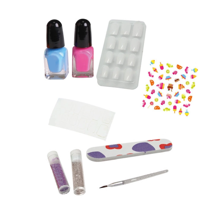 Tapk manikiūrininke su šiuo išskirtiniu nagų rinkiniu ir susikurk originalius blizgančius nagus su saldumynų motyvais. Puikus užsiėmimas visoms kūrybingoms sieloms, kurios mėgsta stilių ir spalvas.
