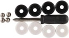 Rinkinyje yra atsuktuvas ir tvirtinimo detalės, kurių dėka lengvai priveršite ratukus ir pakoreguosite nustatymus sklandžiam važiavimui.