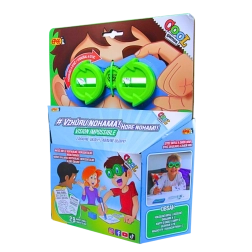 Rinkinyje rasite akinius su pasukamais lankeliais, 29 užduočių kortas, trinamą flomasterį ir žaidimo taisykles. Žaidimas tinkamas vaikams nuo 8 metų.