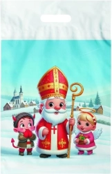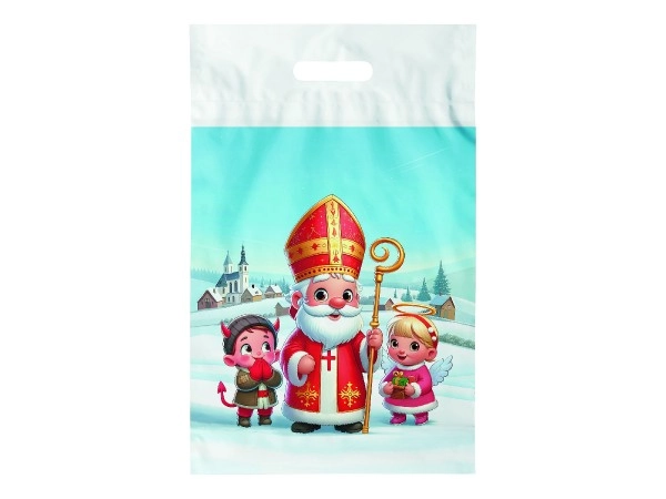 Puošnus polietileninis maišelis su Kalėdų senelio, angelo ir velniuko atvaizdu puikiai tinka pakuoti kalėdines dovanėles. Dydis 29×46 cm suteikia pakankamai vietos saldumynams, žaislams ir didesnėms dovanoms, o ryškus, linksmas motyvas pradžiugins kiekvieną.