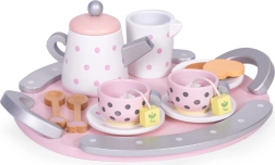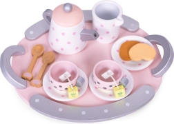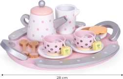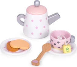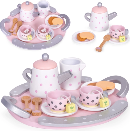 Šis stilingas ECOTOYS arbatos rinkinys pradžiugins kiekvieną vaiką, mėgstantį vaišinti šeimą ir draugus. Mediniai indeliai su taškeliais atrodo tikroviškai, todėl vaikai lengvai pamėgdžioja suaugusiuosius, lavina socialinius įgūdžius ir mokosi stalo etiketo. Patvarus medinis apdirbimas užtikrina ilgaamžiškumą ir saugų žaidimą.