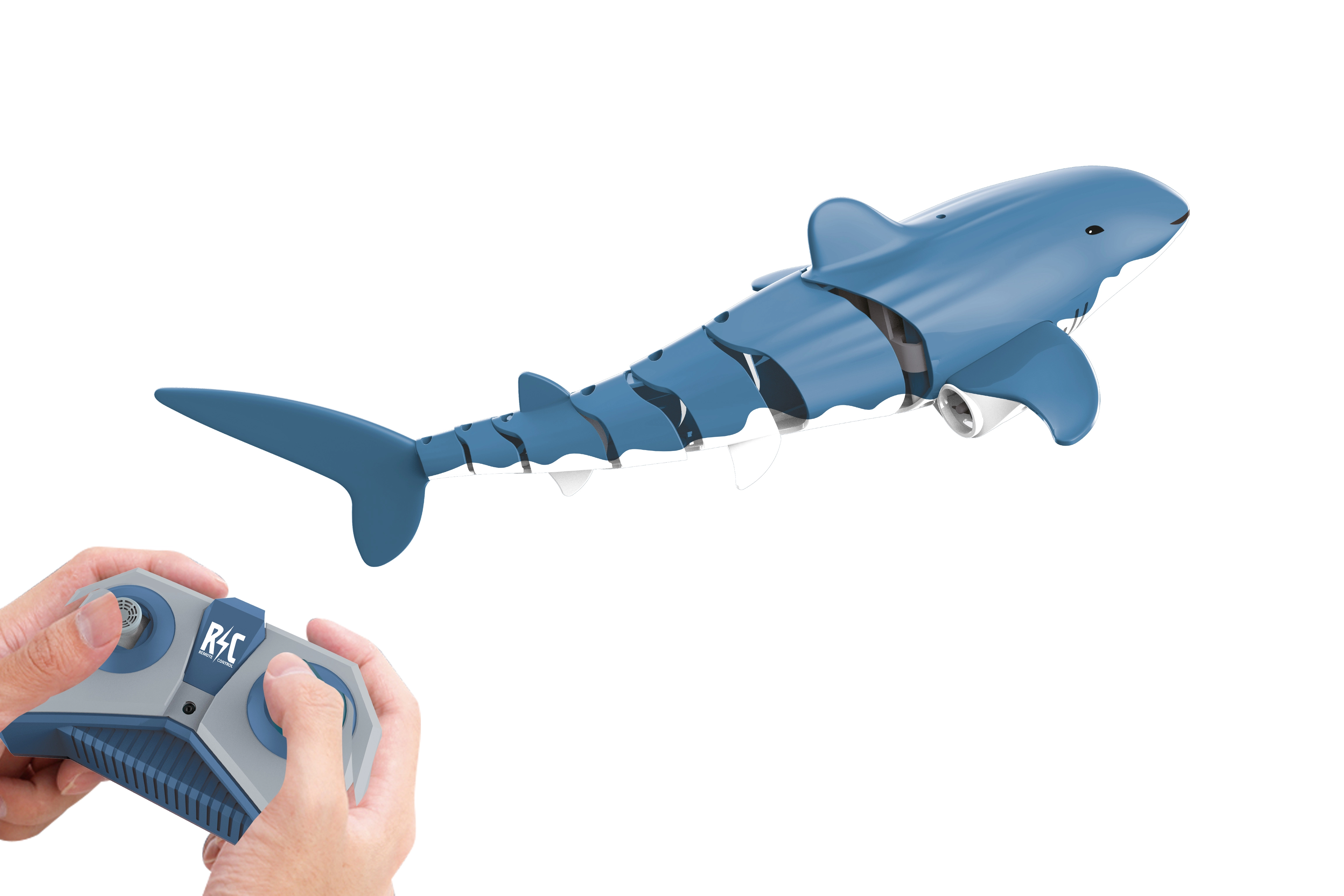 RC ryklys – puikus vandens žaislas vaikams ir suaugusiesiems. Segmentuotas korpusas, veikiančios pelekų dalys ir du rotoriai užtikrina natūralų, sklandų judėjimą ir puikų valdymą. 2,4 GHz dažnio valdiklis stabiliai veikia net trukdžių pilnesnėje aplinkoje ir leidžia sklandžiai valdyti be trikdžių.