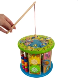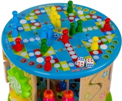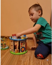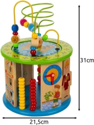 Šis kūrybiškas kubas sukurtas mažiesiems tyrinėtojams ir siūlo 11 skirtingų veiklų ant visų sienelių, įskaitant viršutinį paviršių. Vaikai lavins spalvų ir formų atpažinimą, mokysis skaičiuoti su skaitikliu, supras laikrodžio principus ir gerins akies-rankos koordinaciją dėka labirinto su karoliukais ir kitų interaktyvių elementų.