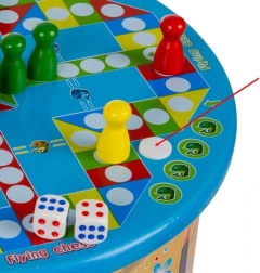 Rinkinyje yra spalvota žaidimo lenta su figūrėlėmis ir kauliukais – idealiai tinka bendroms akimirkoms ir taisyklių pažinimui.