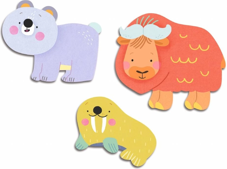 Praktiška gyvūno formos pakuotė ir skaidrus laikymo dėklas viską laikys tvarkingai namuose ir kelionėse. Poliariniai motyvai sudomins ir padės atpažinti gyvūnus bei spalvas.
