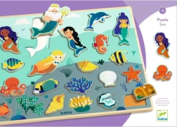Atraskite žaismingą medinę DJECO dėliojimo dėlionę su kerinčiu jūrų pasaulio ir undinių motyvu. Skatina smulkiosios motorikos raidą, akių–rankų koordinaciją ir loginį mąstymą. Kiekvienas elementas turi spalvotą kontūrą lengvesniam įdėjimui, o rėmeliai padeda detalėms tvirčiau laikytis savo vietoje. Dėliojimo elementus taip pat galima naudoti kaip atskiras figūrėles žaidimams.