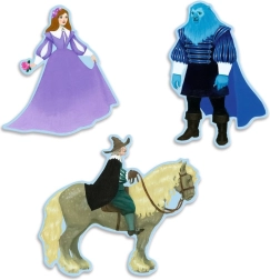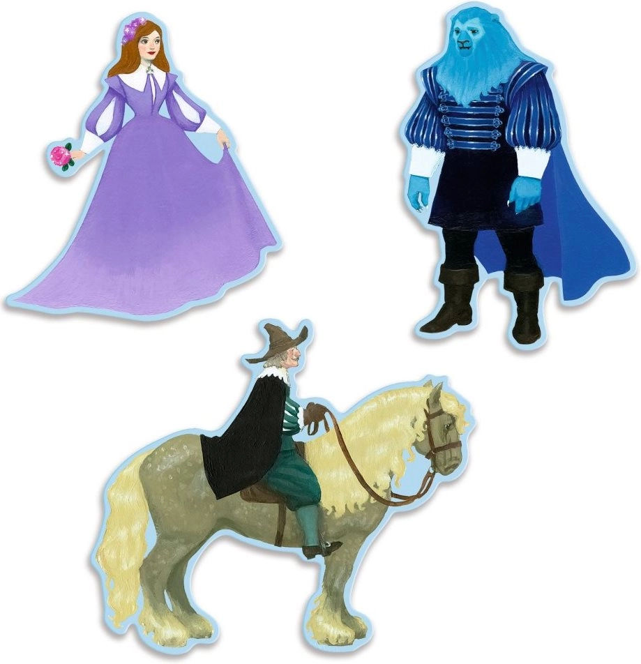Plakatas su pasaka ir 3 kartoninės figūrėlės, praturtinančios žaidimo patirtį.