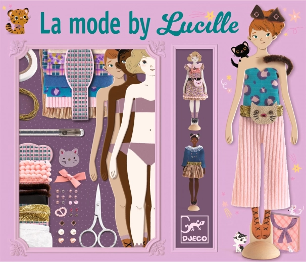 DJECO kūrybinis rinkinys mados dizainerėms yra idealus pradedančioms mados entuziastėms. Su šiuo rinkiniu galite kurti drabužių dizainus be siuvimo, naudojant tikras medžiagas ir puošmenas.