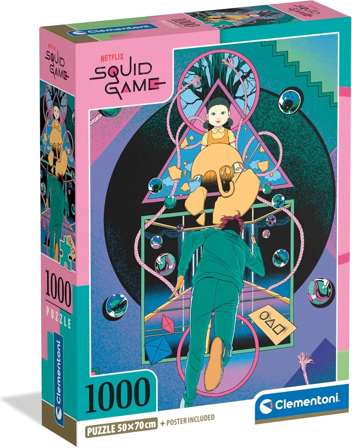Mėgaukitės valandomis pramogų su aukštos kokybės CLEMENTONI dėlione, įkvėpta fenomeno Squid Game. Ši dėlionė iš 1000 dalių suteiks puikų iššūkį, o sudėta sukuria įspūdingą 50 × 70 cm formato paveikslą.