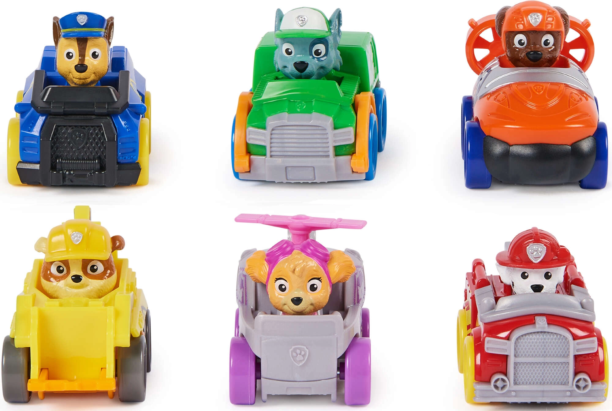 Chase, Marshall, Skye, Rocky, Rubble ir Zuma mini transporto priemonėse, pasiruošę bet kokiai misijai. Idealu kolekcionavimui ir žaidimams su draugais.