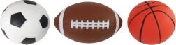 Linksmas trijų minkštų kamuoliukų rinkinys mažiesiems sportininkams suteikia saugų žaidimą namuose ir lauke. Dėl lengvos ir minkštos medžiagos kamuoliukai idealiai tinka vaikams nuo 3 metų. Dizainas atitinka tikrus futbolo, krepšinio ir beisbolo kamuolius, todėl vaikai gali mėgdžioti mėgstamus komandinius sportus ir kartu gerinti koordinaciją bei fizinį pasirengimą.