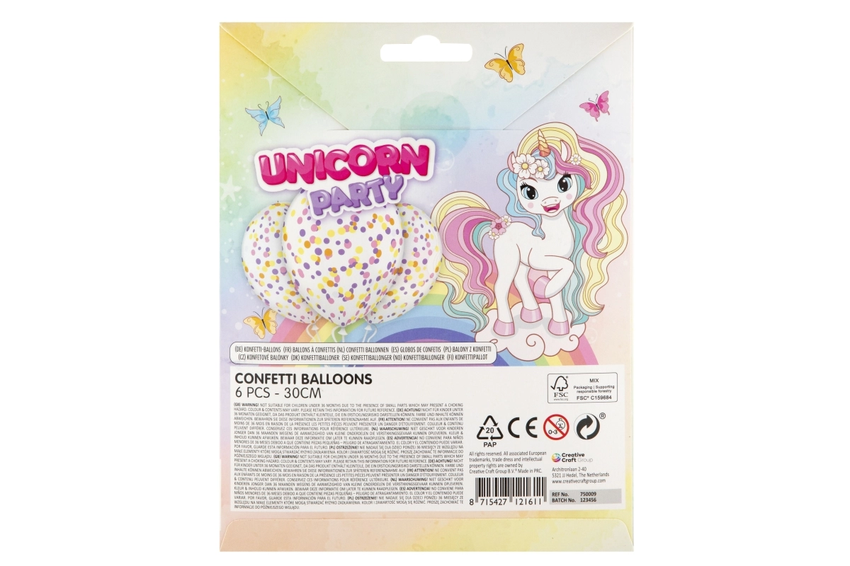 Skaidrūs lateksiniai balionai su spalvotomis konfetėmis – lengvas kelias į įspūdingą dekorą. Dėl universalaus 30 cm dydžio jie tinka į fotokampelį, ant šventinio stalo ar kaip balionų girliandų papildymas. Norėdami sustiprinti efektą, po pripūtimo balioną švelniai patrinkite, kad konfeti priliptų prie sienelių.