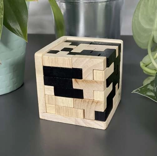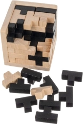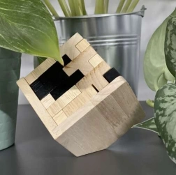 Šis stilingas medinis galvosūkis natūralios ir juodos spalvų derinio yra puikus tiek proto treniruotėms, tiek kaip dizaino akcentas ant stalo. Rinkinyje yra kruopščiai nušlifuotos, netoksiškos „T“ formos detalės, kurios teisingai sudėtos sukuria kompaktišką, spalviškai derintą kubą. Dėl tikslaus apdirbimo dėliojimas yra sklandus, malonus ir įtraukiantis.