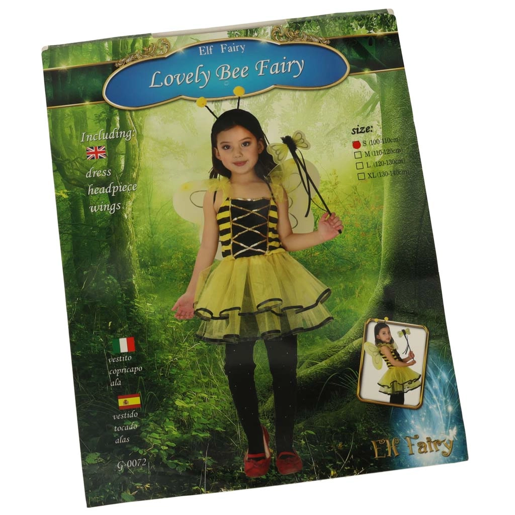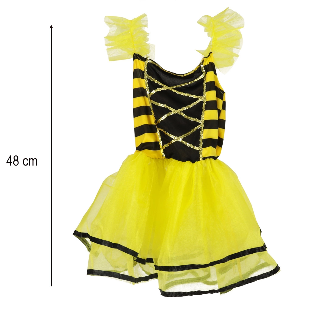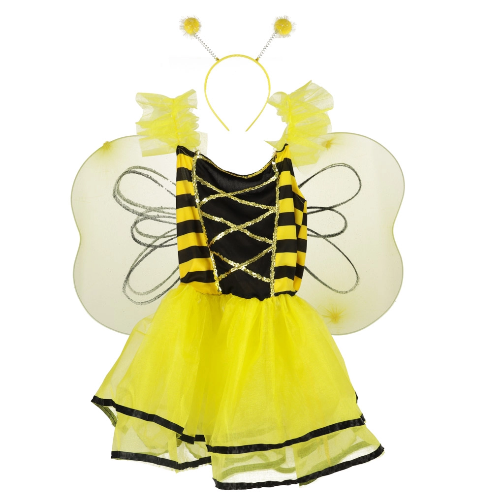 Kostiumą sudaro suknelė, sparnai ir lankelis su antenėlėmis – visa, ko reikia pilnam jūsų mažosios bitutės įvaizdžiui.