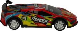 Raudonas lenktyninis automobilis THUNDER suteikia jaudinantį važiavimą nuo pirmos sekundės. LED apšvietimas paryškina veiksmą ir prieblandoje, o guminės padangos užtikrina gerą sukibimą nebraižant grindų. Puikiai tinka pramogoms viduje ir kieme.