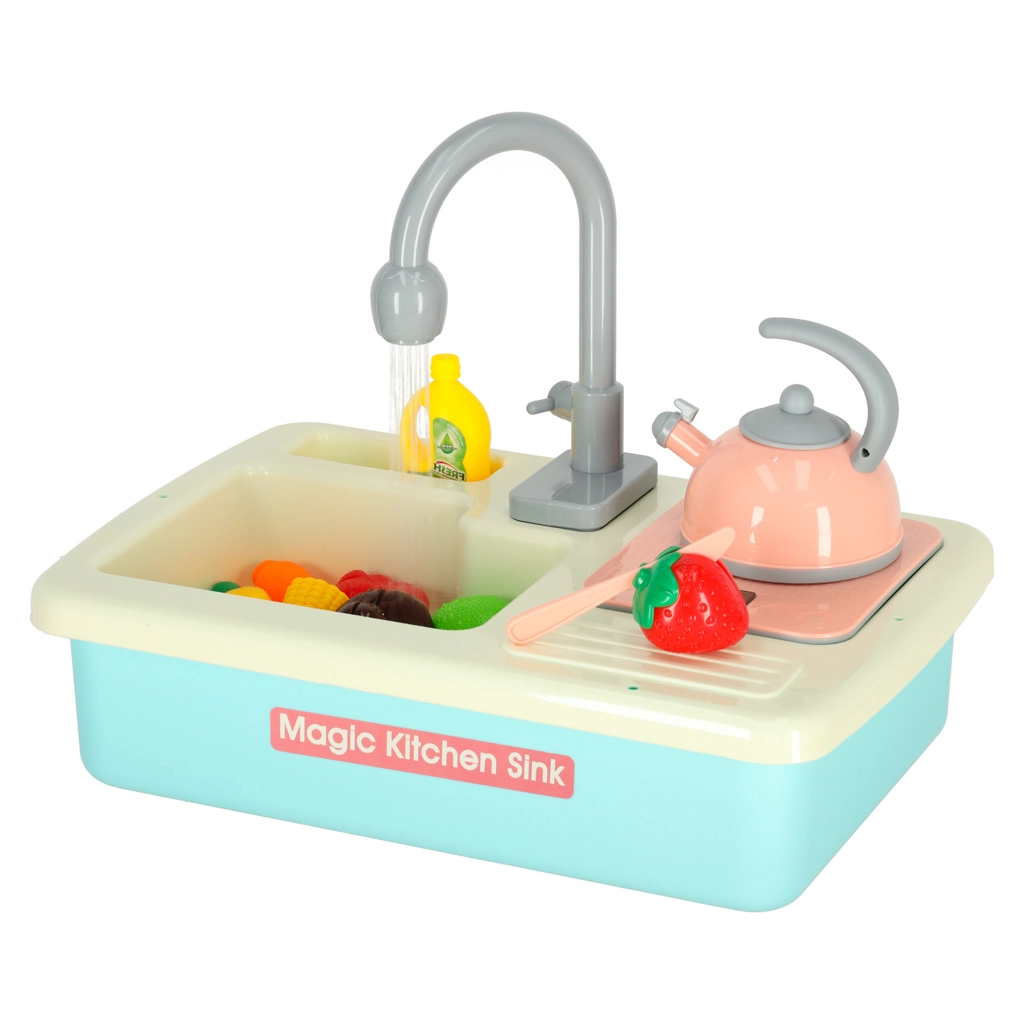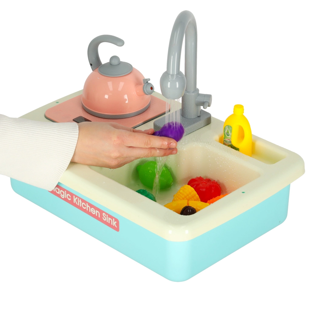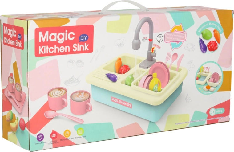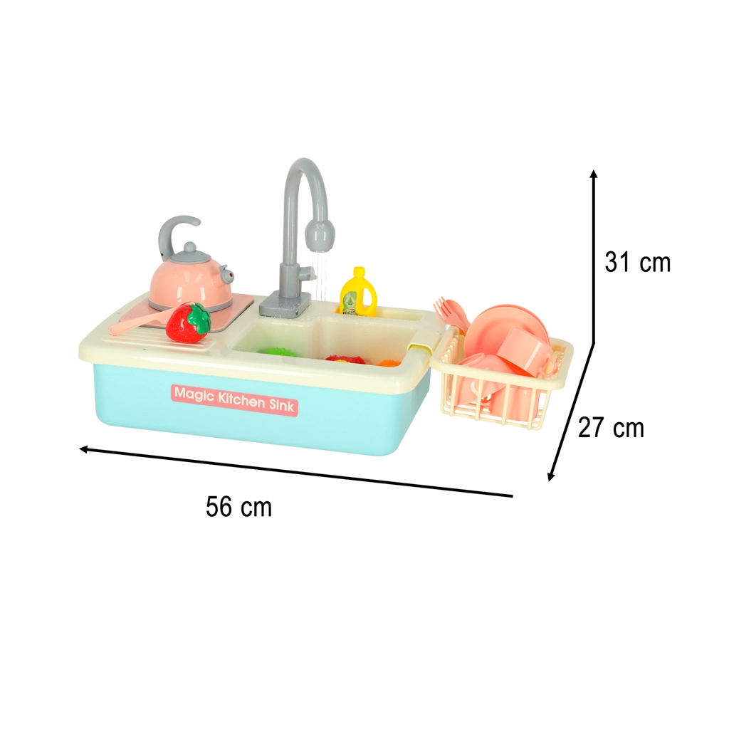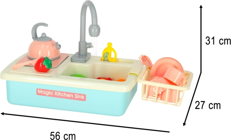 Ši realistiška vaikiška kriauklė veikia beveik kaip tikra – įdėjus baterijas siurblys paleidžia vandens cirkuliaciją, todėl vaikai gali plauti indus ir mokytis atsakomybės virtuvėje. Žaidimas kartu natūraliai ugdo vandens taupymo įpročius ir skatina praktinius įgūdžius.