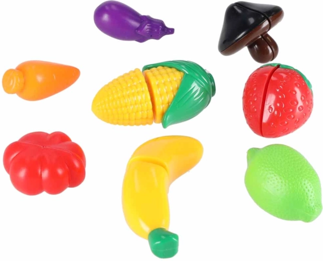 Spalvoti maisto produktai su lipdukais/užsegimais leidžia saugiai „pjaustyti“ ir žaismingai mokytis virtuvės veiklų.