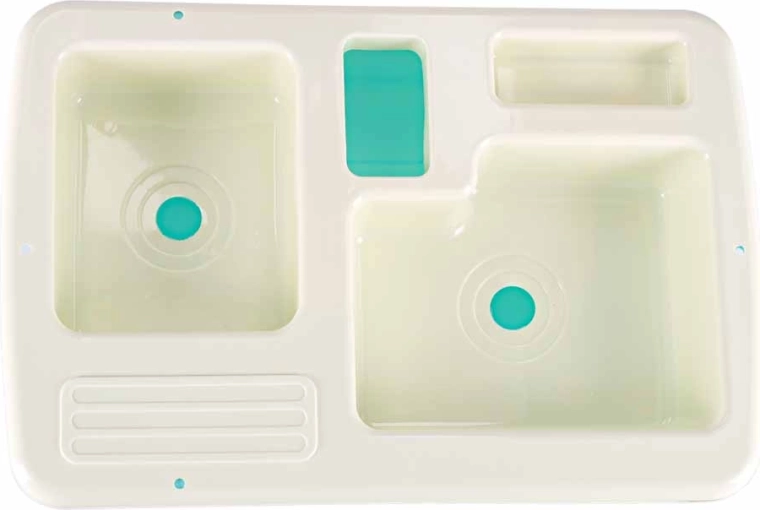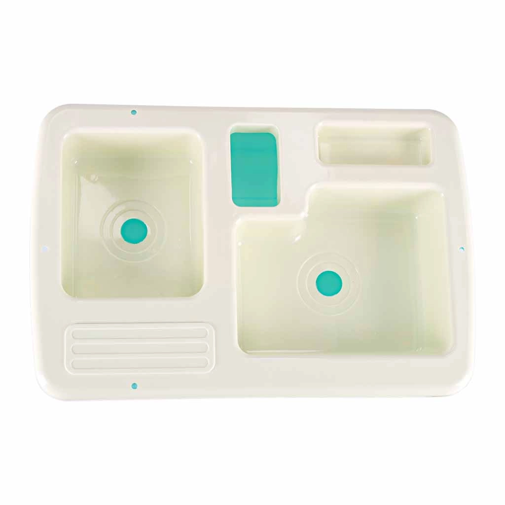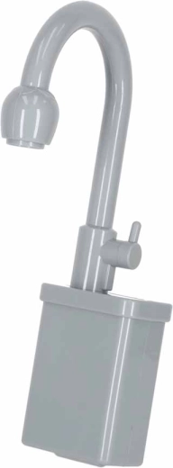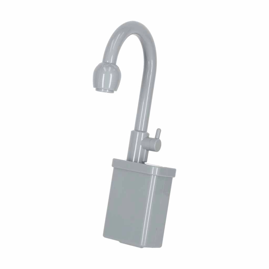 Veikiantis maišytuvas su siurbliu cirkuliuoja vandenį įdėjus 2× AA baterijas. Vaikai gali skalauti indus ir „produktus“ kaip tikroje kriauklėje.