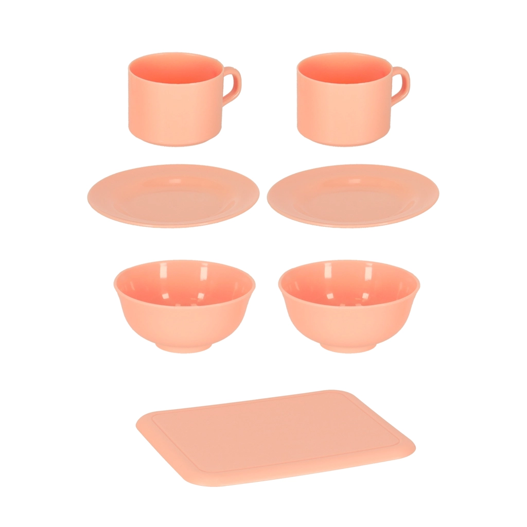 Lėkštutės, dubenėliai, puodeliai, stalo įrankiai ir arbatinukas suteikia daug galimybių serviruoti ir tvarkytis – viskas vaikiško dydžio.