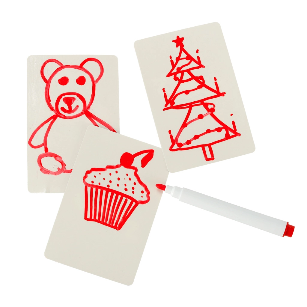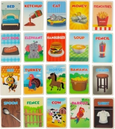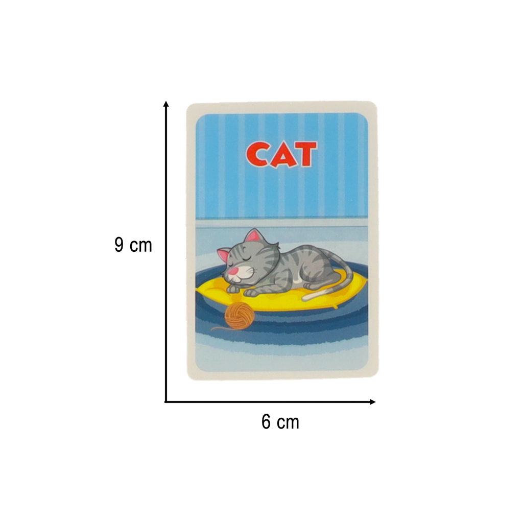 Rinkinyje yra kortelės su užrašais anglų kalba – tai puikus būdas išmokti naujų žodžių ir lavinti kalbinius įgūdžius.