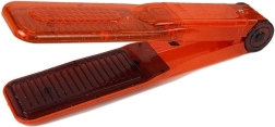 Oranžinis plastikinis tiesintuvas su gofruotu paviršiumi – puikus priedas vaikams, norintiems mėgdžioti suaugusiųjų plaukų formavimą.