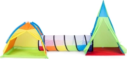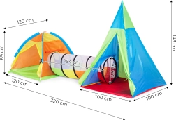 Linksmas 3 viename vaikų palapinių rinkinys iš IPLAY prekės ženklo pavers kambarį ar sodą nuotykių aikštele. Rinkinyje yra iglu palapinė, tipi ir jungiamasis tunelis, kurių kiekvieną galima naudoti atskirai. Lengva ir saugi konstrukcija, patvarus poliesteris ir greitas surinkimas suteiks valandų aktyvių pramogų vaikams nuo 3 metų.