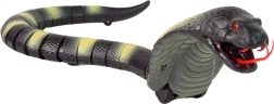 Realistiška RC kobra, kurios ilgis 44 cm, suteiks vaikams daug pramogų ir smagių pokštų. Gyvatišką judėjimą užtikrina apačioje esantys ratukai, valdymas vyksta per IR nuotolinio valdymo pultą kiaušinio formos su dviem mygtukais važiavimui pirmyn ir posūkiams. Įkrovimas per USB, saugų žaidimą užtikrina CE sertifikatas ir EN 71 standartas vaikams nuo 6 metų.