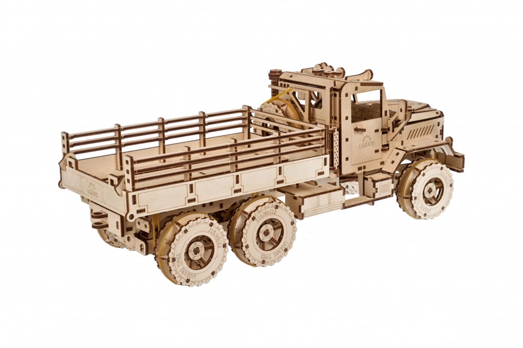 Mėgaukitės ikoninio krovininio automobilio, įkvėpto legendinių 6x6 mašinų, surinkimu. Detalus variklis po atidaromu dangčiu, veikiantys durų rankenėliai, reguliuojami veidrodėliai ir nuleidžiamos krovinio skyriaus durys pabrėžia autentišką modelio išvaizdą ir funkcionalumą. Spyruoklinis variklis perduoda jėgą per du diferencialus į priekinę ir galinę ašis, tad modelis iš tikrųjų važiuoja.
