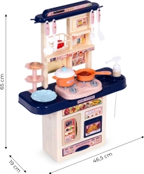 Padovanokite vaikams realistišką pramogą jų pačių virtuvėje. Įjungus degiklius pasigirsta virimo garsas, o kaitlentės nušvinta raudonomis LED. Kriauklę galima pripildyti vandeniu – prijungus rezervuarą čiaupas veikia ir iš jo tikrai bėga vanduo.