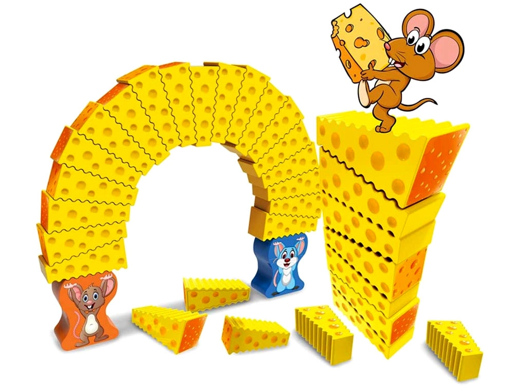Krovimo žaidimas pakelia rankos ir akies koordinaciją į aukštesnį lygį. Sūrio kaladėlės ir pelių figūrėlės sukuria dinamišką iššūkį.