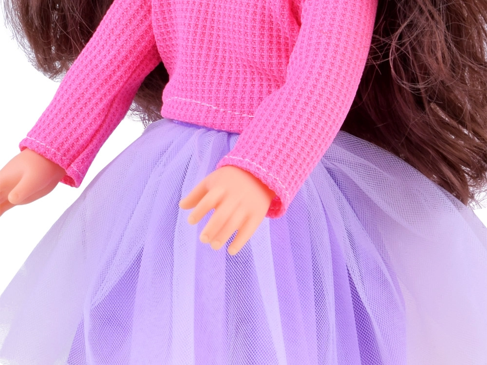 Elegantiška 36 cm aukščio lėlė yra ideali draugė mažosioms. Dėl ilgų rudų banguotų plaukų, kuriuos galima šukuoti ir formuoti, ji ugdo vaikų mados pojūtį ir plaukų priežiūros įgūdžius. Ji vilki stilingus rožinius marškinėlius ir violetinį sijoną, o rožiniai bateliai ir kepurė suteikia elegantišką įvaizdį. Judinamos rankos ir kojos leidžia lengvai išdėstyti lėlę įvairiose pozose, skatinant kūrybišką ir vaizduotę žadinantį žaidimą.