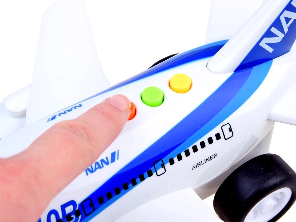 Interaktyvus lėktuvas pradžiugins kiekvieną vaiką, svajojantį apie skrydžius. Dėl trinties pavaros (Friction power) pastūmus lėktuvas vikriai rieda lygiu paviršiumi. Paspaudus viršuje esančius spalvotus mygtukus, įsijungia šviesos efektai kabinoje ir varikliuose, stiuardesės balsas anglų kalba ir realistiškas lėktuvo garsas.