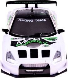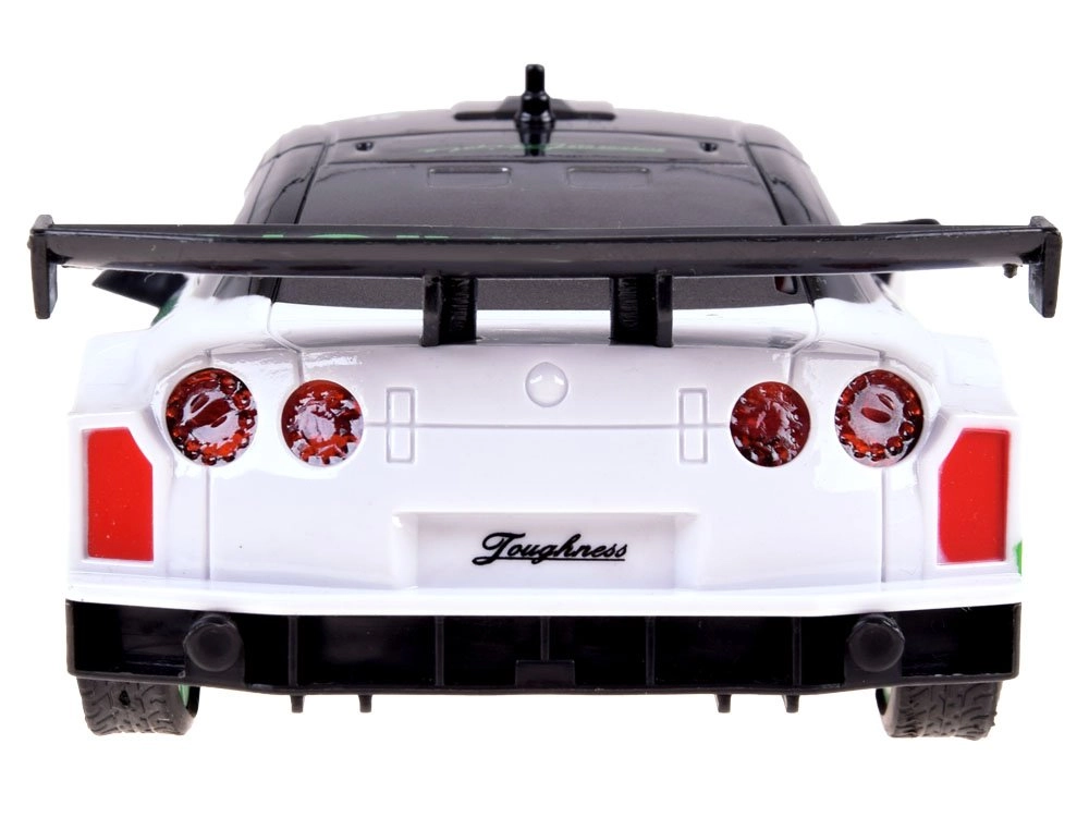 Detalus kėbulas su spoileriu ir sportiniais lipdukais puikiai atrodo tiek trasoje, tiek lentynoje. Kompaktiški matmenys idealiai tinka namų važiavimui.