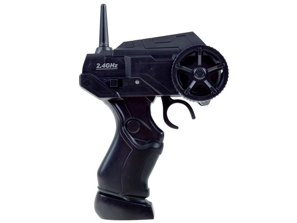 Į pakuotę įeina viskas, ko reikia: automobilis, pistoletinis valdiklis, 3,7 V akumuliatorius, įkroviklis, atsarginiai ratai ir 6 kūgiai trasai pažymėti. Valdymas intuityvus – važiavimas pirmyn/atgal ir sukimas dešinėn/kairėn, todėl greitai įsivažiuosite.