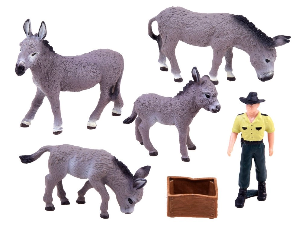 Atraskite realistiškai sukurtą ūkio figūrėlių rinkinį su asilais, ūkininku ir priedais. Kiekvienas elementas detaliai suformuotas ir rankomis dažytas, kad būtų itin tikroviškas, puikiai tinka kūrybiniam žaidimui ir mokymuisi apie gyvenimą ūkyje.