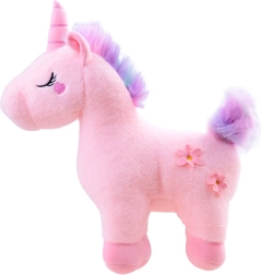 Mielas pliušinis vienaragis pastelinių spalvų – idealus draugas glėbesčiavimui ir žaidimams. Jis turi minkštą kūnelį, išsiuvinėtas akis, širdelę ant skruosto ir gėlytes šone. Švelni vaivorykštinė karčinė ir uodega suteikia stebuklingą išvaizdą, o maloni medžiaga puikiai tinka vaikų apkabinimams.