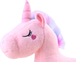 Šis stebuklingas pliušinis vienaragis pavergs kiekvieno vaiko širdį. Jis pagamintas iš ypač švelnios medžiagos, kuri vilioja glėbesčiuotis visą dieną. Pastelinė rožinė spalva su spalvinga karčine ir minkštu rožiniu rageliu paverčia žaislą gražia vaikų kambario dekoracija ir patikimu palydovu kelionėse.
