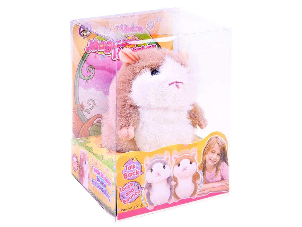 Žavus kalbantis pliušinis žiurkėnas pakartoja viską, ką pasakysite, o tuo pačiu linksmai siūbuoja. Jis minkštas liesti, gražiai pūkuotas ir idealiai tinka kaip dovana vaikams ir gyvūnėlių mylėtojams.