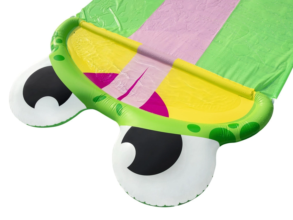 Montavimas greitas ir paprastas – tiesiog ištieskite čiuožyklą ant žolės, prijunkite sodo žarną ir pramogos gali prasidėti!