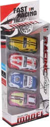 Šis puikus rinkinys siūlo keturias patvarias ir detaliai atliktas lenktynines mašinėles, kurias tereikia patraukti atgal ir paleisti. Dėl kompaktiško 7 cm dydžio jos puikiai tinka namų varžyboms, kliūčių trasoms ir kelionėms. Metalinė konstrukcija užtikrina ilgesnį tarnavimo laiką ir pramogą be kompromisų.