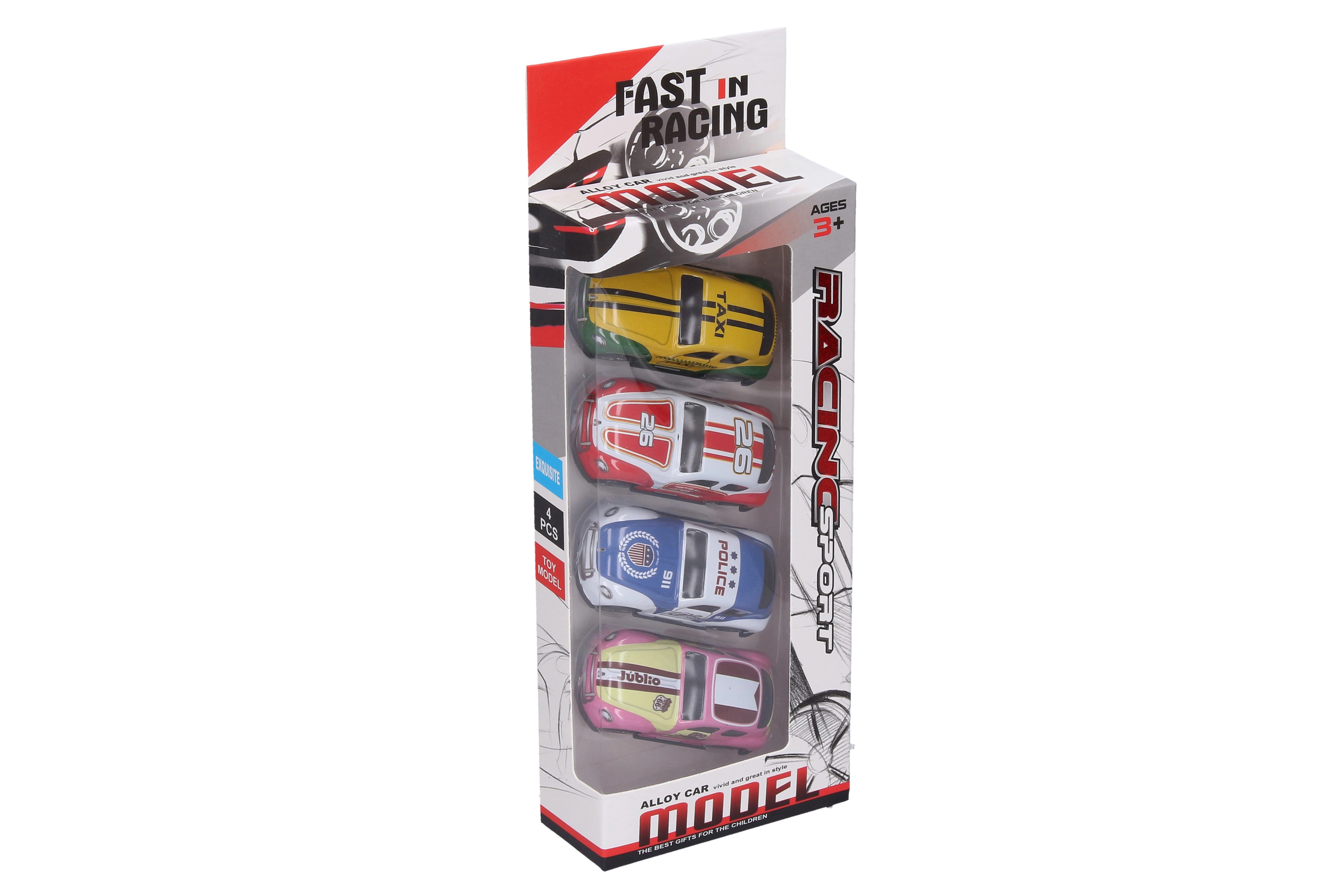 Lenktyninių mašinėlių rinkinys 7 cm, 4 vnt., metalinės su atgaliniu užvedimu