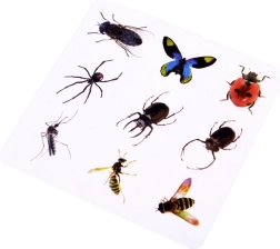 Rinkinyje yra kortelės su realistinėmis vabzdžių iliustracijomis, kurios padeda plėsti žinias apie gamtą.