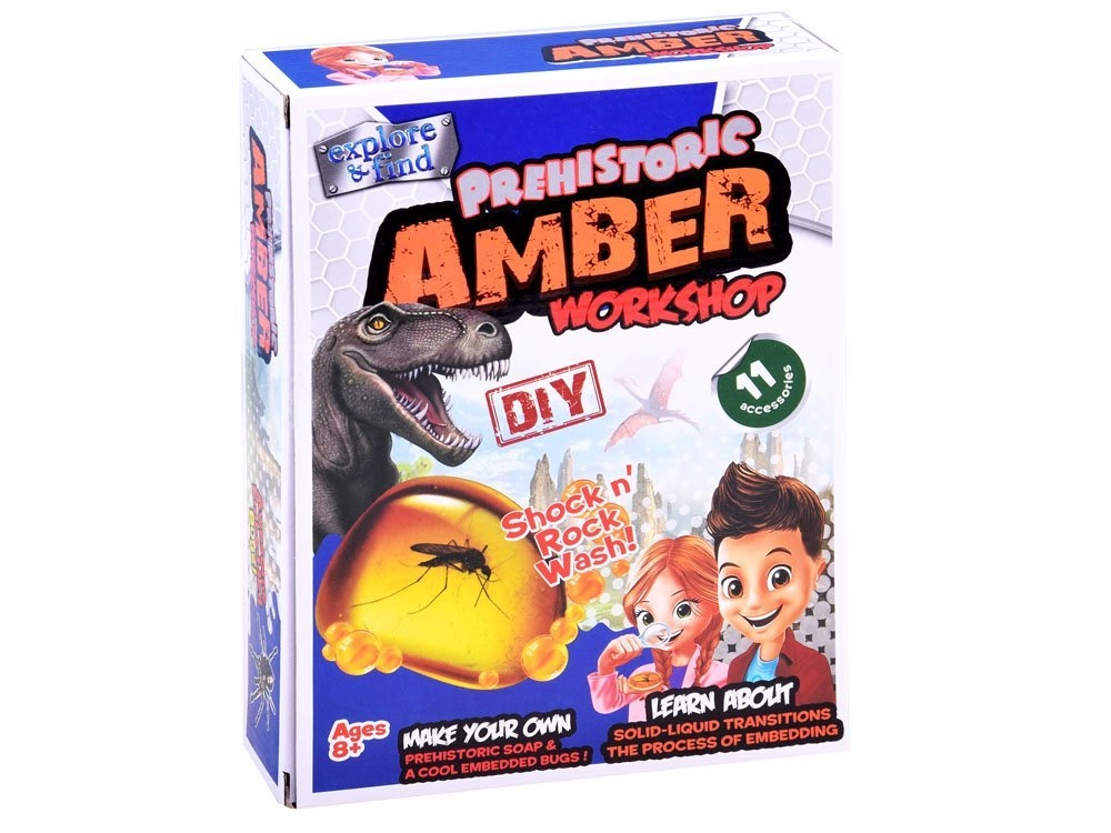 Atraskite praeities žavesį ir leiskite savo vaikui susikurti dalelę priešistorinio pasaulio! Naudodamiesi įdomiu ir naudingu rinkiniu, vaikai ir suaugusieji kartu gali eksperimentuoti ir sužinoti apie kietųjų ir skystųjų medžiagų virsmus. Rinkinys tinka vaikams nuo 8 metų ir yra idealus tiems, kurie mėgsta rankdarbius ir turi lakią vaizduotę.