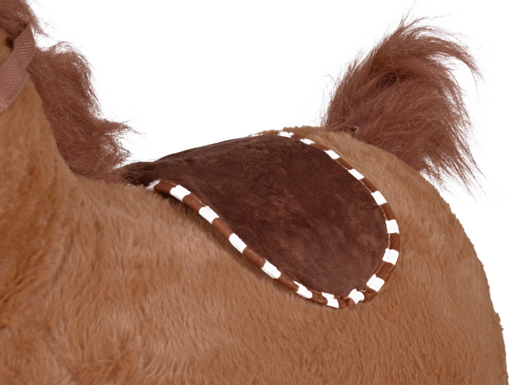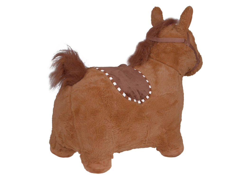 Šokinėjantis arkliukas sujungia patvarią pripučiamą šerdį su minkštu pliušiniu užvalkalu, kad būtų užtikrintas maksimalus komfortas ir saugumas žaidžiant. Vaikai gali laikytis už didelių ausų, kurios padeda išlaikyti pusiausvyrą. Įsiūtos kamanos, minkštas balnelis ir vešlūs karčiai su uodega suteikia žaislui realistišką išvaizdą ir kviečia į naujus nuotykius.