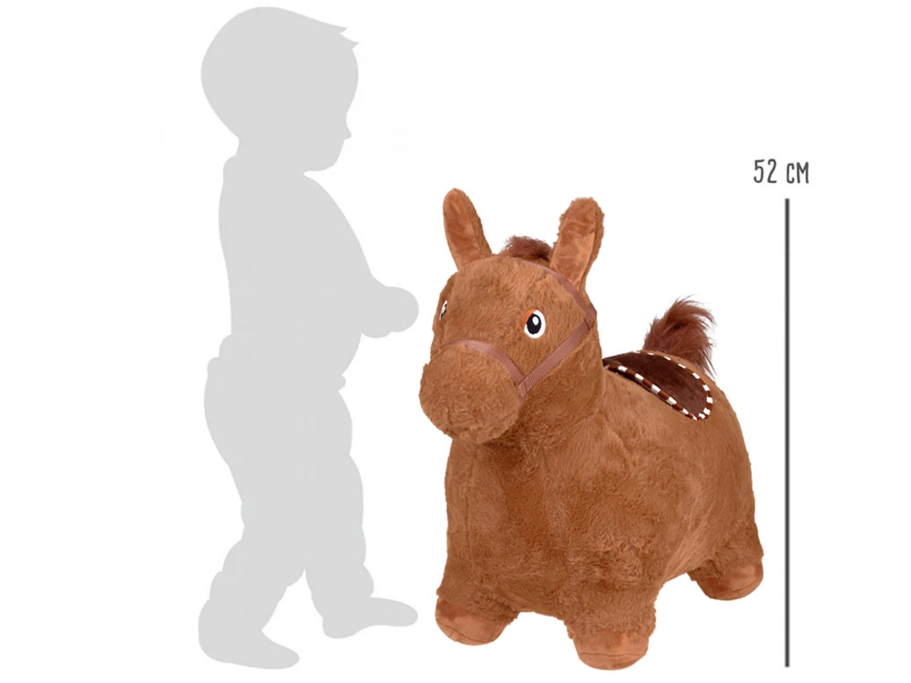 Mielas pliušinis šokinėjantis arkliukas vaikams suteiks valandų aktyvaus žaidimo namuose ir lauke. Dėl pripučiamos konstrukcijos ir minkšto užvalkalo jis yra stabilus, saugus ir malonus liesti. Šokinėjimas ant arkliuko lavina pusiausvyrą, koordinaciją ir stiprina raumenis, o integruotas čiurlenukas tarp ausyčių prideda linksmų garsinių efektų. Rinkinyje yra pompa lengvam pripūtimui.