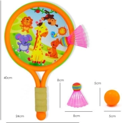 Rinkinyje yra badmintono plunksninė tūta ir kamuoliukas, tad vaikai gali lengvai kaitalioti skirtingus žaidimus ir treniruotes.